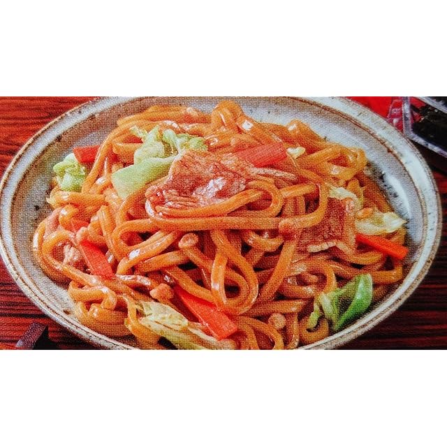 なめらかな食感の焼うどん専用めんに、豚肉、キャベツ、人参、あげ玉を具材に加えた、かつおだしと醤油が香ばしい調理焼うどんです。