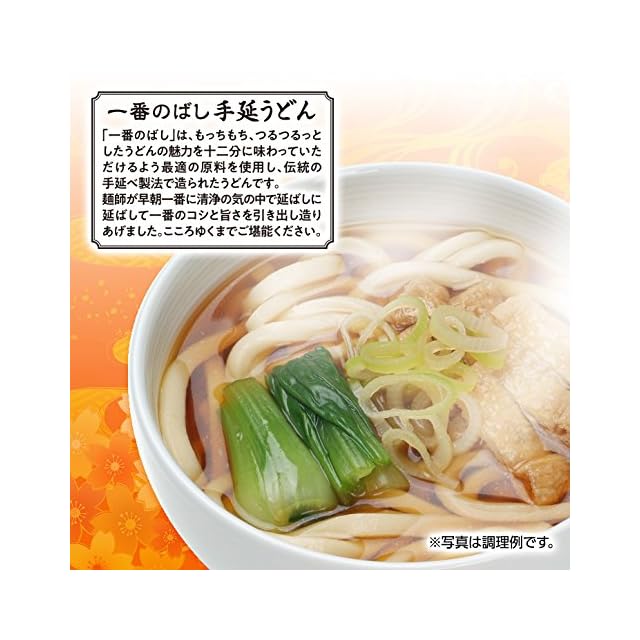 もっちもち、つるつるっとしたうどんの魅力を十二分に味わっていただけるよう最適の原料を使用し、伝統の手延べ製法で造られたうどんです。麺師が早朝一番に清浄の気の中延ばしに延ばして一番のコシと旨さを引き出し作り上げました。