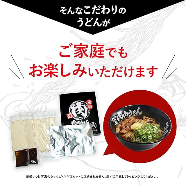 福岡博多で行列になる店 元祖肉肉うどん。お土産にもぴったりな化粧箱入りで常温保存ができます。半生麺とスープ、味付け牛肉が入っているので簡単調理が可能に。 うどん 肉うどん にくにくうどん