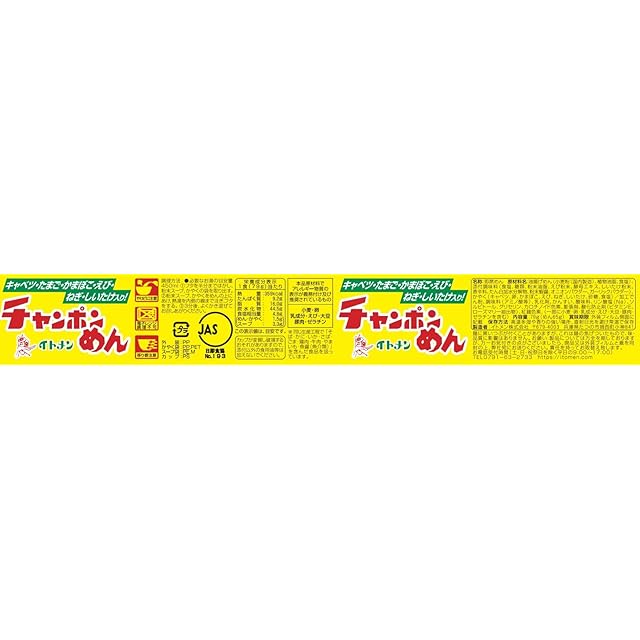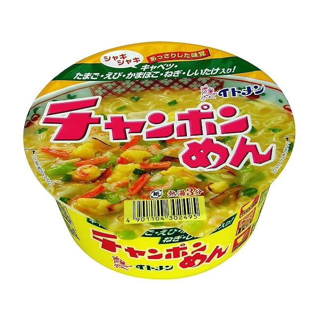 原材料:油揚げめん(小麦粉(国内製造)、植物油脂、食塩)、添付調味料(食塩、糖類、粉末油脂、えび粉末、酵母エキス、しいたけ粉末、香辛料、たん白加水分解物、粉末蝦醤、オニオンパウダー、ガーリックパウダー)、かやく(キャベツ、卵、かまぼこ、えび、ねぎ、しいたけ、砂糖、食塩)/加工でん粉、調味料(アミノ酸等)、乳化剤、かんすい、酸味料、リン酸塩(Na)、ソルビトール、グリセリン、カロチノイド色素、膨張剤、酸化防止剤(ビタミンE、ローズマリー抽出物)、紅麹色素、(一部に小麦・卵・乳成分・えび・大豆・豚肉・ゼラチンを含む)