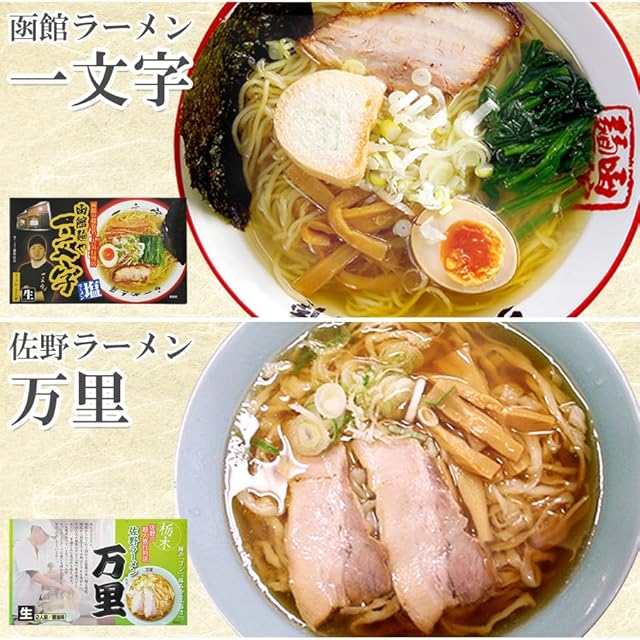 ✅〇函館ラーメン 一文字 麺】ウェーブ細麺【スープ】塩スープ 〇佐野ラーメン 万里 【麺】平麺【スープ】醤油スープ 〇旭川ラーメン 青葉【麺】ちぢれ細麺【スープ】醤油スープ 〇京都ラーメン 新福菜館 【麺】中華そば【スープ】醤油スープ 〇東京ラーメン ひるがお【麺】ちぢれ麺【スープ】塩スープ