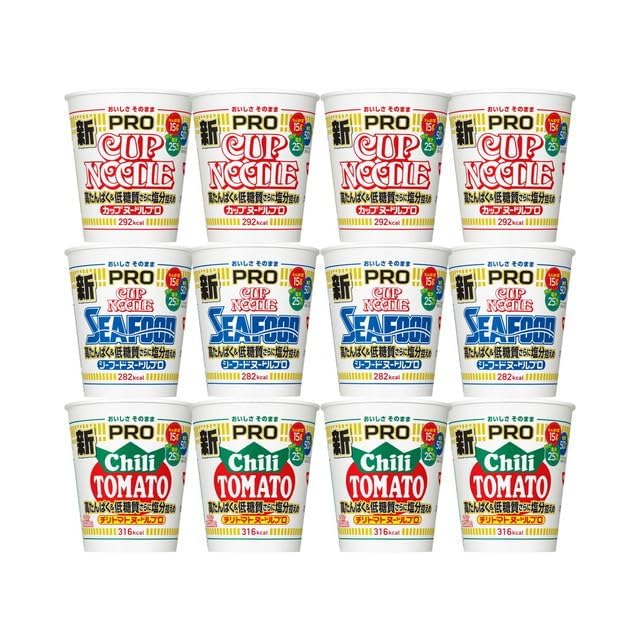 日清食品 カップヌードルPRO 高たんぱく&低糖質さらに塩分控えめ 75gカップ×4個<br>日清食品 カップヌードルPRO 高たんぱく&低糖質さらに塩分控えめ シーフードヌードル 78gカップ×4個<br>日清食品 カップヌードルPRO 高たんぱく&低糖質さらに塩分控えめ チリトマトヌードル 80gカップ×4個<br><br><br>