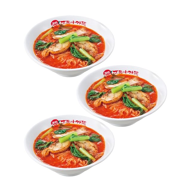 【商品情報】974kcal/1食あたり:たんぱく質 33.6gg 脂質 23.1g 炭水化物 159.5g 食塩相当量 5.6g / 原材料:スープ〔有機トマト・ジュースづけ(イタリア製造)、鶏パイタンベース(豚骨、鶏ガラ、キャベツ、にんにく、しょうが、たまねぎ)、鶏肉、小松菜、ラーメンスープ、植物油脂、しょうゆたれ、にんにく、チキンエキス、しょうが、唐辛子、こしょう/調味料(アミノ酸等)、酒精、pH調整剤、増粘剤(キサンタン)、着色料(カラメル)、酸化防止剤(V.E)〕、めん〔小麦粉(国内製造)、小麦たん白、卵白粉末、食塩、粉末豆乳、打ち粉(でん粉)/乳化剤、かんすい、酒精、焼成Ca〕、(一部に小麦・卵・大豆・鶏肉・豚肉・ゼラチンを含む)