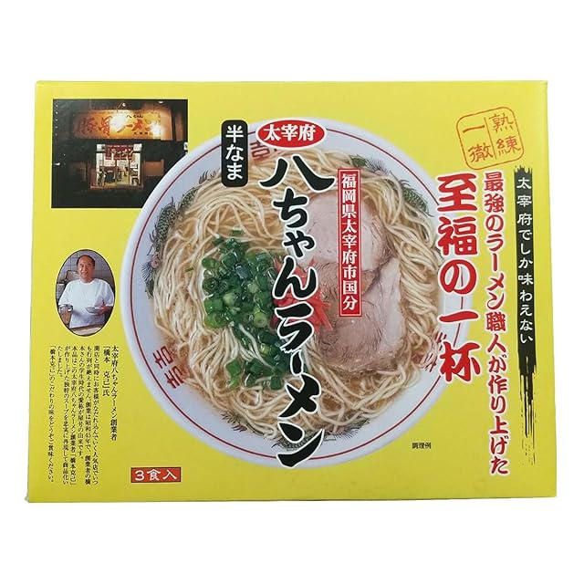 福岡県太宰府市国分にある八ちゃんラーメン。<br> 開店と同時にお客様がなだれ込んでいく人気店でいつも行列が絶えません。<br> 創業は昭和45年で、創業者の橋本さんの学生時代の愛称が屋号の由来です。<br> 本品はこの太宰府八ちゃんラーメン創業者「橋本克己」が作り上げた独特のスープを忠実に再現して商品化いたしました。<br> 太宰府でしか味わえない最強のラーメン職人が作り上げた至福の一杯を是非ご賞味ください。<br>