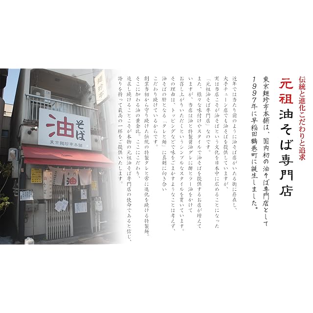 ■商品内容 油そば4食パック1箱 麺140g・タレ54g・刻み海苔0.5g 各4食入り<br><br> ■原材料情報 麺 小麦粉・食塩・かんすい・卵白粉末・酒精・くちなし色素 <br><br> 付加調味料(タレ) 植物油・醤油(小麦)・食酢・畜肉エキス・食塩・果糖ブドウ糖液・調味料(アミノ酸等)・カラメル色素・香辛料・パプリカ色素・増粘剤(キサンタン) <br><br> ※原材料の一部に大豆、小麦、豚肉、鶏肉を含む <br><br> ■賞味期限・保存方法 製造日から30日間 商品出荷時点で賞味期限は25日程度となります 要冷蔵(10度以下)