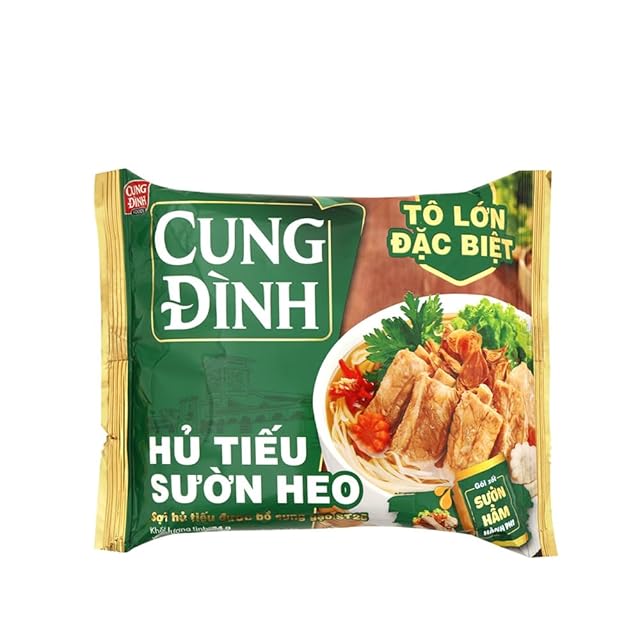 ベトナムらしいフレーバーが特徴的なスープで食べるインスタント麺シリーズ。 「スンヘオ」は、角麺のお米めん「フーティユ」で代表的なメニューのひとつ。ポークリブや干しえび、スパイス等を煮込み甘みを加えたものに、フライドシャロットの風味を加え、ベトナムらしい風味と味わいのある濃厚なスープに仕上げました。お湯をかけて3分で簡単に調理可能なインスタントタイプ麺になります。