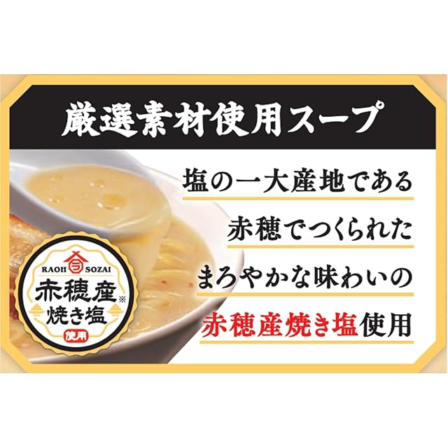 豚骨ベースのまろやかで濃厚な味わいがクセになる。「赤穂産焼き塩」を使用した "こだわりスープ"