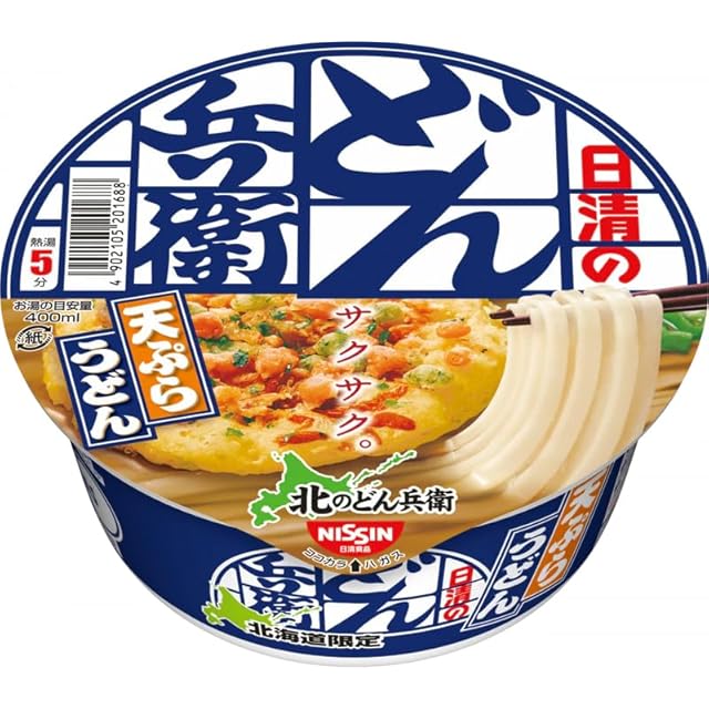 道民の味を追求した北海道限定のどん兵衛!「北のどん兵衛」シリーズは、地産地消ならぬ "道産道消" をコンセプトに、北海道千歳市にある「札幌日清 千歳工場」で製造している「日清のどん兵衛」の北海道地区限定商品です。道産利尻昆布と複数種類の素材から出る、まろやかな旨みが特長の甘めのつゆに、エビが香るあとのせサクサク天ぷらが入った天ぷらうどん。