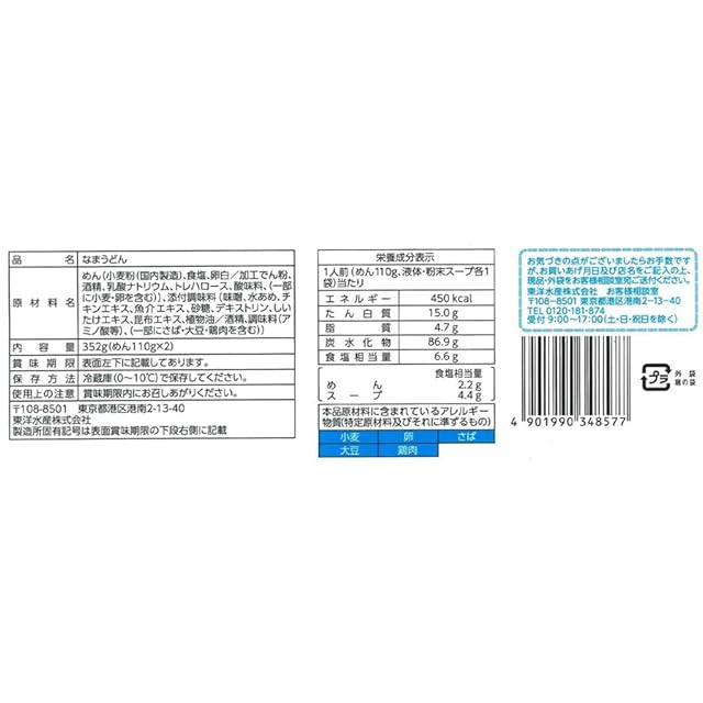 原材料:めん(小麦粉(国内製造)、食塩、卵白/加工でん粉、酒精、乳酸ナトリウム、トレハロース、酸味料、(一部に小麦・卵を含む))、添付調味料(味噌、水あめ、チキンエキス、魚介エキス、砂糖、デキストリン、しいたけエキス、昆布エキス、植物油/酒精、調味料(アミノ酸等)、(一部にさば・大豆・鶏肉を含む))