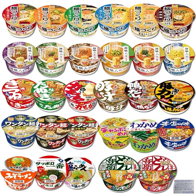 マルちゃん(あじわい豚汁うどん、白い力もちうどん、緑のたぬき、赤いきつね)