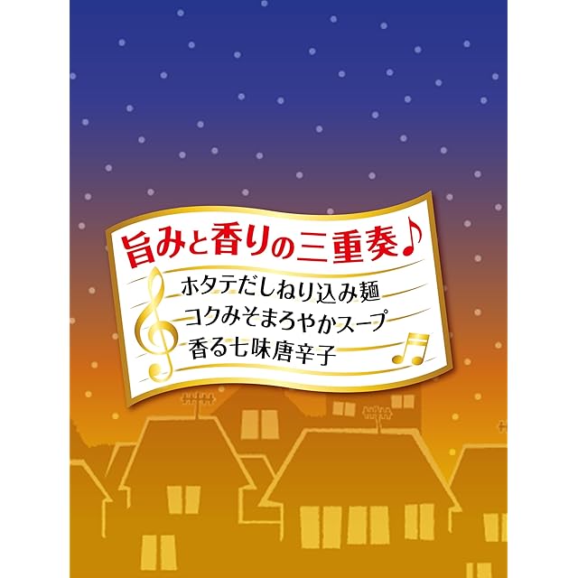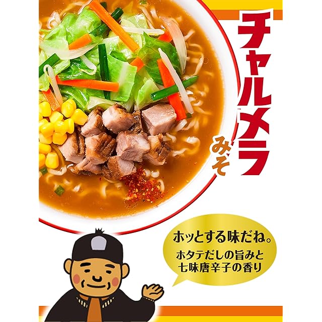 "かくし味はホタテだし!そのだしに使用しているホタテを100%国産化! めんのホタテだし、スープのみそ、別添の七味と 旨みと香りが織りなす三重奏、“ホッとする”味わいをお楽しみください。"