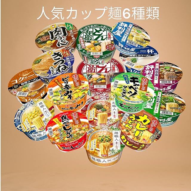 商品の説明 これらは日本の人気ラーメン・カップ麺の詰め合わせです。味の種類が豊富で、醤油味、味噌味、とんこつ味、カレー味など、日本人に大人気の味がそろっています。 原材料・成分 加工でん粉、増粘剤(アラビアガム)、調味料(アミノ酸等)、炭酸Ca、リン酸塩(Na)、カラメル色素、香料、pH調整剤、酸化防止剤(ビタミンE)、乳化剤、香辛料抽出物、パプリカ色素、クチナシ色素、ビタミンB2、チャ抽出物、ビタミンB1、ベニコウジ色素、(一部に小麦・乳成分・ごま・さば・大豆・ゼラチンを含む)