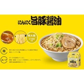 にんにく旨豚醤油 :熟成麺のような弾力や粘りのあるわしわし食べるこだわり麺に、豚脂、豚の旨味の利いたにんにく醤油スープ