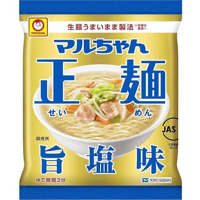 生麺うまいまま製法による、なめらかでコシのある中太麺に、しっかりとした旨みのある塩味スープ。