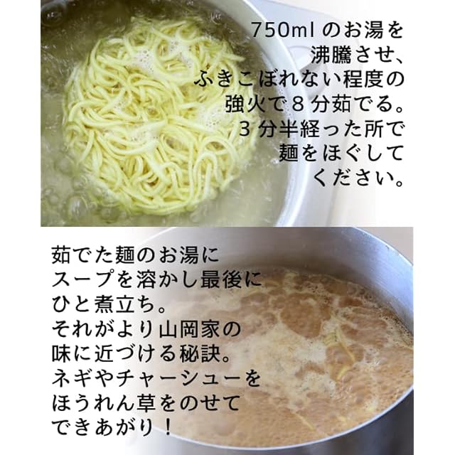 「ラーメン山岡家」の定番メニュー、濃厚豚骨スープの「特製味噌ラーメン・元祖醤油ラーメン・塩ラーメン・辛味噌ラーメン・味噌ラーメン」の5種類食べ比べセットです。濃厚な白味噌を使用した、ワンランク上の味わいの特製味噌。30年以上受け継がれてきた伝統の味、醤油。山岡家でしか味わえない、深みのある塩。旨味と辛さのハーモニーが癖になる一杯、辛味噌。コクとキレを両立させた、山岡家の味噌。こだわりの茹で時間8分と熟成乾麺がお店のラーメンを限りなく再現しました。今回は麺も店メニューのものに近い太麺。”ガツンときてくせになる”ラーメンをお楽しみください。