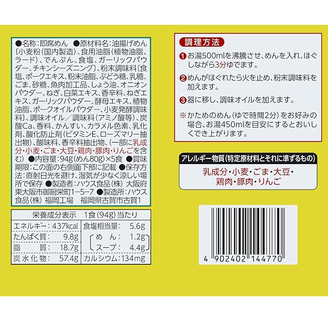 ハウス うまかっちゃん5個パック(470g)×6個 [九州の味とんこつスープをベースにしたコクのあるラーメン