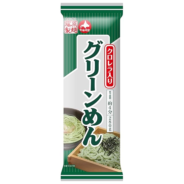 原材料:小麦粉(小麦(北海道産))、食塩、クロレラ粉末/着色料(クチナシ)、(一部に小麦を含む)