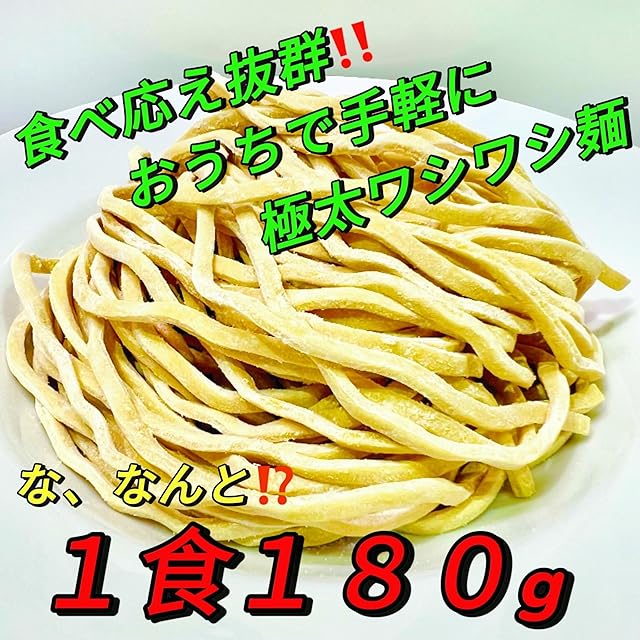 G系極太麺はラーメン二郎に代表されるガッツリ系のラーメンに最適な、ワシワシとした食感が特徴の生中華麺です。ウェーブともみがかかった太めの麺は、しっかりとした食感と麺の味・小麦の風味を楽しめます。 1袋に180gが2玉入った大盛りサイズで、お腹いっぱい食べられます。 ご家庭で手軽に本格的な美味しいラーメンをぜひこの麺でお楽しみください。 賞味期限は冷蔵で約3週間。期限内に召しあがれない場合はフリーザーバッグなどに袋ごと入れて冷凍庫で保存してください。※冷凍後は概ね1ヶ月程度でご使用ください。