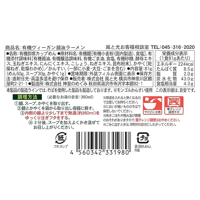 風と光 有機ヴィーガン醤油ラーメン 81g×12個