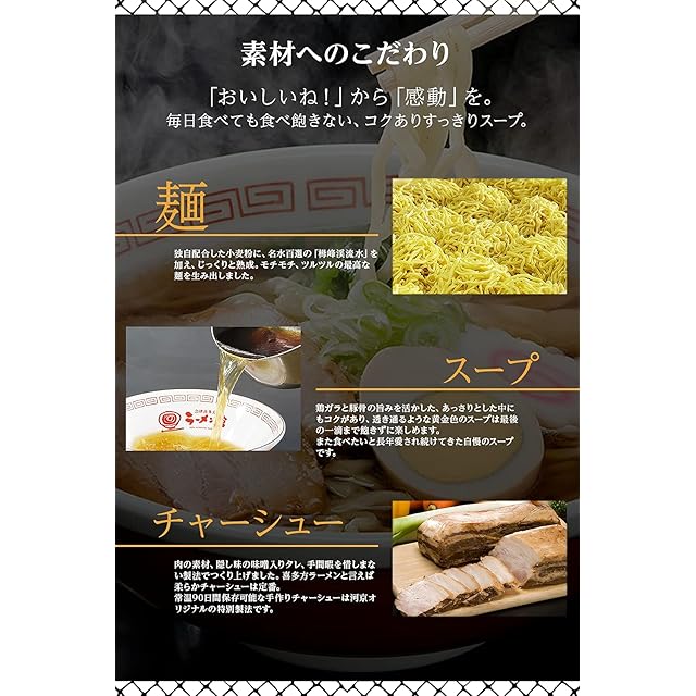 原材料:内容物 :生ラーメン(太麺)120g×4 醤油スープ 35g×4 チャーシュー 25g×4 メンマ 50g×1