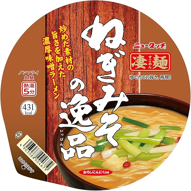 スープ(みそ、動物油脂、たん白加水分解物、糖類、ねりごま、ポークエキス、食塩、ニンニクペースト、植物油脂、発酵調味料、香辛料、タマネギペースト、ショウガペースト)(国内製造)、めん(小麦粉、食塩、大豆食物繊維)、かやく(ねぎ、糖類、唐辛子、でん粉)/加工でん粉、調味料(アミノ酸等)、酒精、かんすい、ソルビトール、カラメル色素、環状オリゴ糖、酸化防止剤(ビタミンE)、ミョウバン、香辛料抽出物、酸味料、増粘多糖類、香料、クチナシ色素、(一部に小麦・ごま・大豆・鶏肉・豚肉・ゼラチンを含む)
