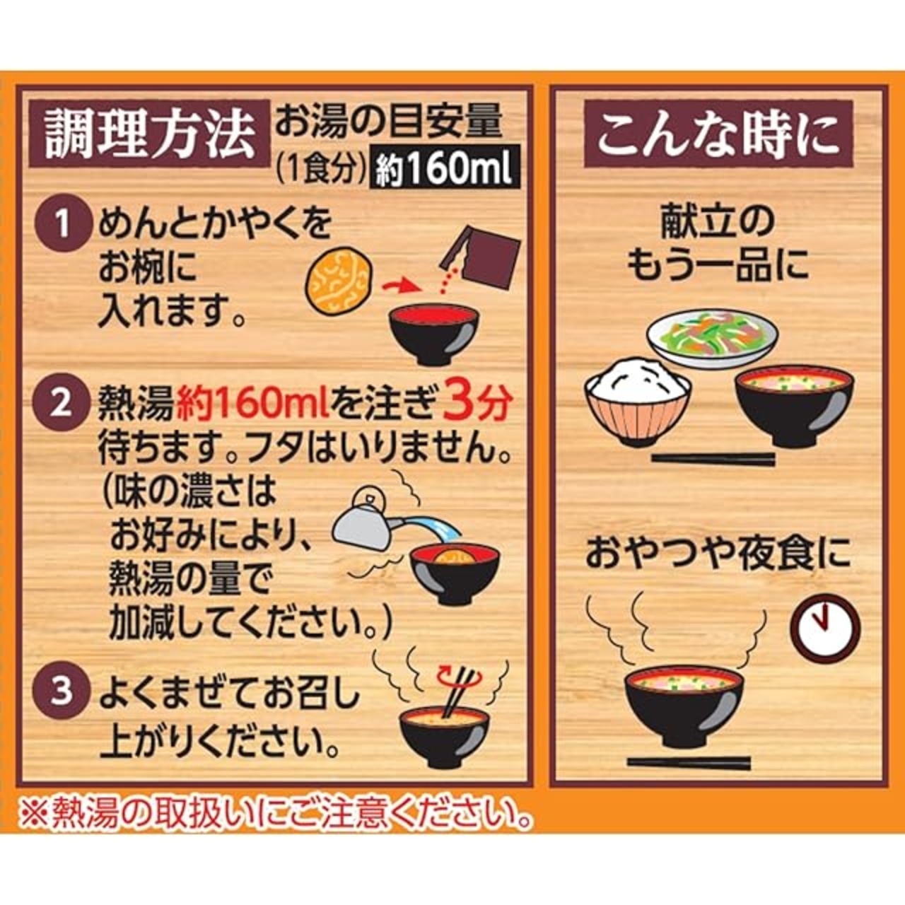 必要なお湯の目安量:160ml(※一食あたり)