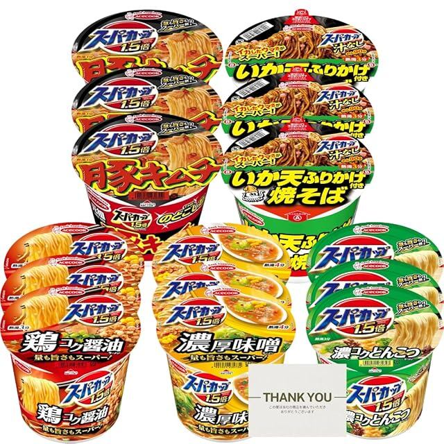 エースコック スーパーカップ 詰め合わせ 5種 各3食 15食 + 割り箸セット