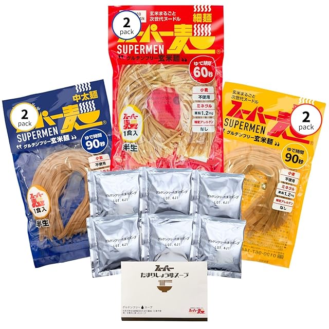 たくさんのリピートを頂いていることに厚くお礼を申し上げます。 小麦粉を一切使わず、国産の玄米粉と北海道産ばれいしょデンプンのみで作られた、グルテンフリーパスタヌードル(玄米麺)。化学調味料、保存料、着色料無添加。生産工場でも小麦の使用は一切ございません。また、玄米粉の焙煎も、製粉までを工場で一貫生産しています。独自製法で、今までになかった生麺パスタのような食感を実現。ゆで時間はたったの細麺60秒。中太麺、平打麺90秒。玄米のミネラルがたっぷり。グルテンフリーダイエットにもおすすめです。賞味期限は1年。備蓄や非常食にもどうぞ。