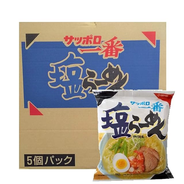 名称:サッポロ一番塩ラーメン ( さっぽろ いちばん しおラーメン ) ラーメンスープ 付<br> 内容量:サッポロ一番 しおラーメン 100g(めん 91g)×5袋セット×6入 1箱(1ケース)<br> 賞味期限:サッポロ一番 塩ラーメンは3か月以上<br> 保存方法:インスタント 袋麺は高温多湿・香りの強い場所・直射日光を避け、常温で保存<br> 製造者:サンヨー食品 株式会社 <br> 配送区分:サッポロ一番しおラーメンは常温便<br><br> 栄養成分表示(推定値)<br> 1食(100g)当たり<br> エネルギー:455kcal<br> たんぱく質:10.1g<br> 脂質:18.6g<br> 炭水化物:61.9g<br> 食塩相当量:6.1g(めん・やくみ:2.2g、スープ:3.9g)<br> ビタミンB1:0.33mg<br> ビタミンB2:0.58mg<br> カルシウム:243mg<br> <br> この商品に含まれるアレルギー物質<br> 小麦・乳成分・ごま・大豆・鶏肉・豚肉・やまいも<br>