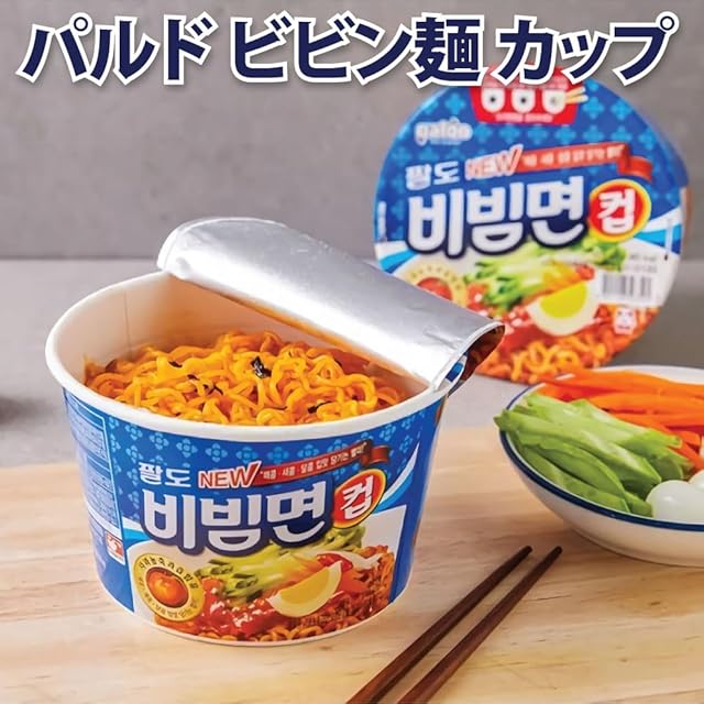 名 称:Paldo ビビン麺 カップ<br> 原材料:小麦粉、パーム油、食塩、グルテン、シーズニングエキス、砂糖、コチュジャン、液状果糖、トマトケチャップ、唐辛子粉末、大豆油、リンゴエキス、ねぎ、キャベツ、醤油、酢、玉葱フレーク、着色料(リボフラビン、オレオレジンローズベリー、パプリカ)、調味料(核酸)、(原材料の一部に小麦、大豆、牛肉、豚肉、鶏肉、乳、卵成分を含む)<br> 内容量:115g(1個あたり)<br> 商品説明:韓国の冷やしビビン麺が『カップラーメン』で登場! <br> 夏に人気がある辛いビビン麺!冬にも簡単に楽しめる!<br> 冷やした歯ごたえの良い麺に甘辛ソースの組み合わせはマジ絶品です。<br> 原産地:韓国<br> 保存方法:直射日光・高温多湿を避けて常温で保存してください。<br>