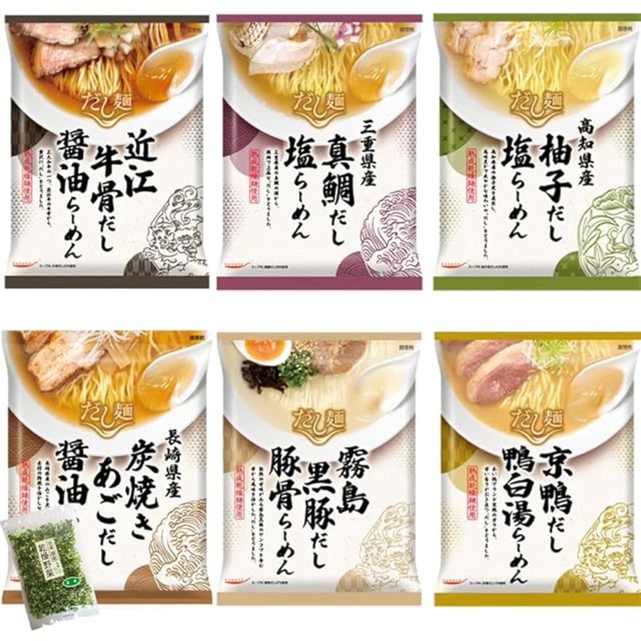 ?国産素材でだしをとった風味豊かな即席めん「だし麺」シリーズから、西日本のこだわり食材を使用した6種を詰め合わせました。生麺に近い麺の食感と各種だしの旨味が効いたスープ。インスタントラーメンを超えた上品な味わいが評判です。冬は白菜、春菊などの鍋の野菜を入れて体を温めるお鍋風に楽しんでいただき、夏は冷やし麺にして冷たい麺としてもとても美味しいです。