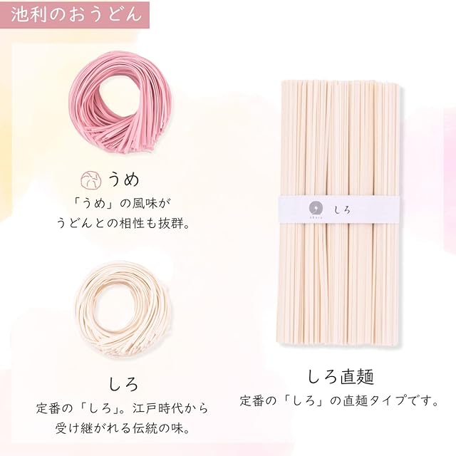 くるっとまぁるいうどんのセット。円満で縁起のよいカタチは大切な方への贈り物に最適。紅白の色合で贈り物にふさわしいセットです。まぁるい気持ちを添えてお届け先に。1850年創業 三輪そうめんの老舗「池利」とのコラボで生まれた「うどん」。贈って安心の品質です。