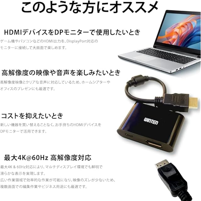 こちらの製品は、DisplayPort端子をHDMI端子に変換するアダプターではございません。