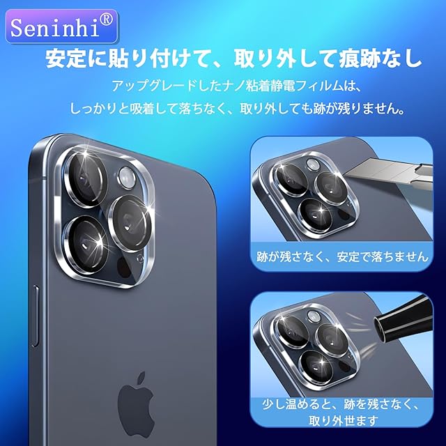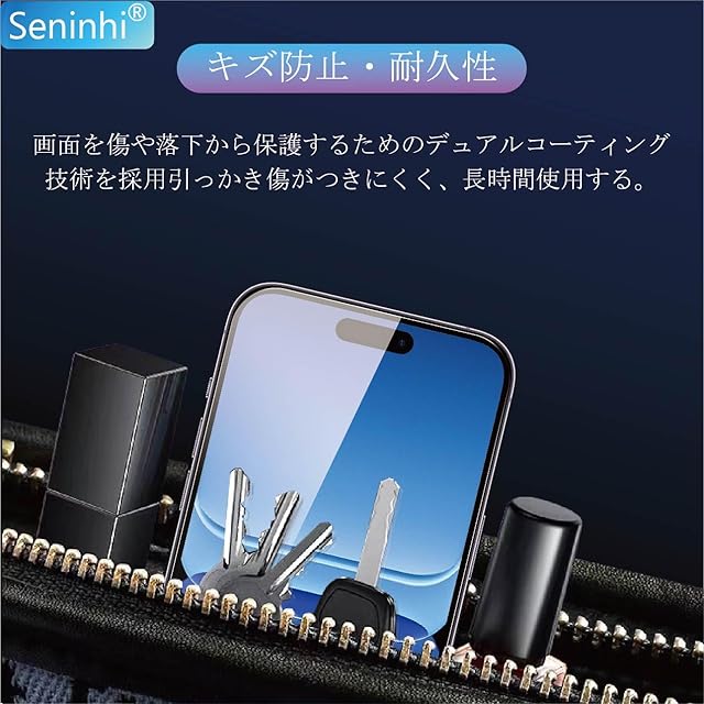 【貼り付けやすい・油防止・指紋防止】seninhi強化フィルムのセットには、位置決め用のガイド枠を付属しておりますので、位置決めが簡単になり、フィルムの自動吸着機能を使って初心者さえも簡単に貼り付けることができます。更に気泡も入りにくいです。フィルムを貼る前に、ホコリ取りシールで細かいホコリを取り除き、気泡の防止をお勧めします。更に私たちの強化ガラスフィルム表面にナノポリマーコーティングを設計しており、これにより油防止、指紋防止できます。汚れや油などが付いでも、簡単に軽くだけできれいになります。