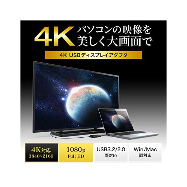 HDMIポートがないノートパソコンや、4K出力に対応していないパソコンからでも本製品で4K出力することができます。