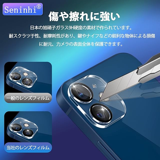 Seninhi 対応 iPhone 12 カメラ保護 【3枚セット】 対応 apple iphone12 カメラフィルム アイフォン12 カメラ保護カバー ?化ガラス 黒縁取り 露出オーバー防止 9H硬度 キズ防止 防塵 いphone12 用 カメラ保護フィルム BSI123MJTMT