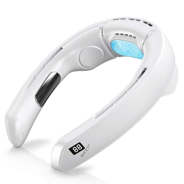 首掛け扇風機 ネッククーラー 【風量無段階調節&冷却プレート&2025年夏新型】 携帯扇風機 羽なし 風量100段階調節 LEDディスプレイ表示 ネックファン 軽量設計 4000mAh大容量 Type-C充電 熱中症対策 16時間連続使用 マスク蒸れ対策/作業/旅行/スポーツ/通勤/家事 父の日/母の日/誕生日 プレゼント(ホワイト)