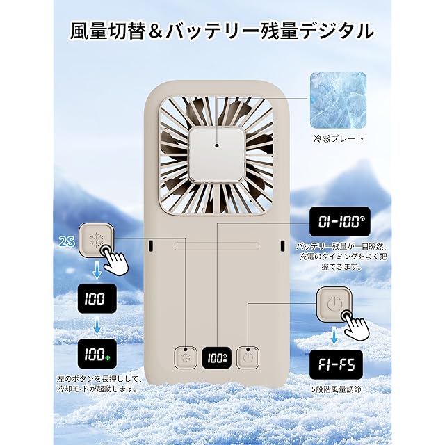 【5000mAh 大容量】5000mAh の大容量バッテリーを搭載しており、充電後数時間もの長時間の稼働が可能です。アウトドアピクニックや音楽フェス、長距離旅行など、電源を頻繁に探すことなく、1 回の充電で快適な涼しさを常に伴い、充電不安を完全に解消します。