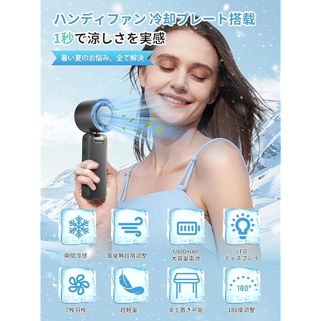 【冷感&涼感・ハンディファン 冷却プレート】手持ち扇風機に冷却プレートを搭載し、真夏でも涼しい感触をもたらします。冷却プレートを直接肌に当てることで、外気温から21℃まで瞬間冷却。従来の扇風機の涼しさに加え、ひんやりとした冷感も実感できます!扇風機能とプレート冷却機能を同時に使用することで、さらに涼しい微風を実現。通勤・通学、移動中、旅行、ビーチ、プール、キャンプ、アウトドア、リラックスシーン、入浴後など、あらゆるシーンで活躍します。