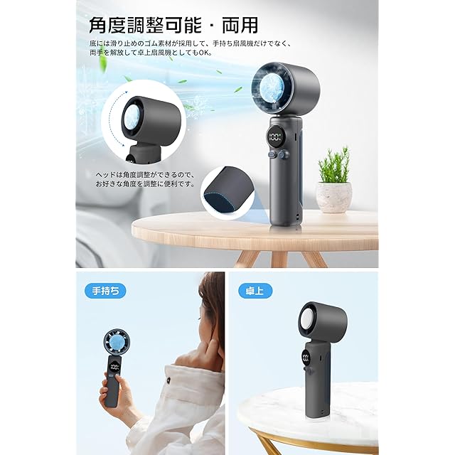 【角度調整可能 &掛け・卓上・手持ち3in1ハンディファン】この小型扇風機は、ヘッドが角度調整できるので、お好きな角度を調整に直接顔に風を送れることは便利です。ストラップ付きで、手持ちで歩きながらでも本体の落下を防止します、リュックなどに引っ掛けると持ち運びに便利で、安心して外出できます。普段使いにはもちろん、出かけるときにもストレスなく携帯できます。さらに、底には滑り止めのゴム素材が採用して、手持ち扇風機だけでなく、両手を解放して卓上扇風機としてもOK。通勤や通学はもちろん、ショッピング、散歩、スポーツ観戦、花火大会、お祭り、野外のイベント、フェス、キャンプ、旅行、テレワークなど、室内外問わず、幅広く活躍できるミニファンです。