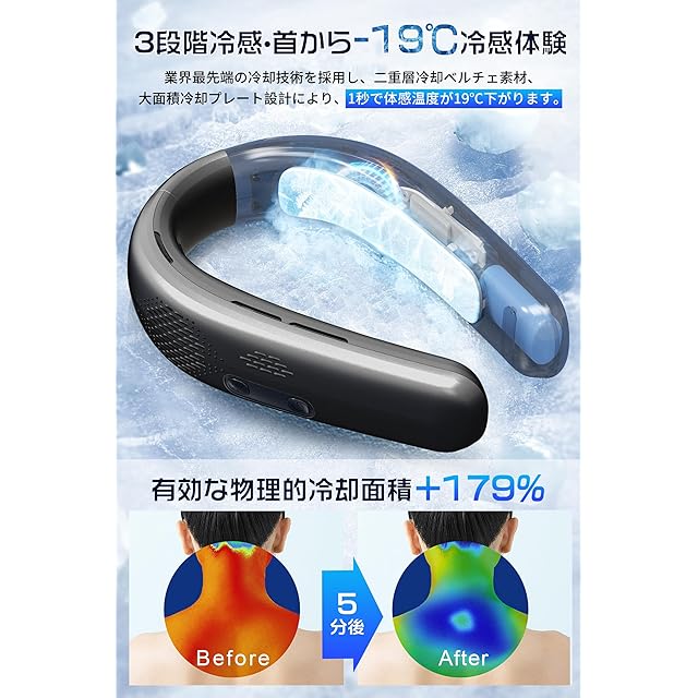 【大面積冷却プレート&瞬間に「−19℃」】このネッククーラーは高性能半導体冷却プレートとペルチェ素子の絶妙な組み合わせにより、冷却効率は普通のアルミ材料の3倍に向上しました。冷感面積が普通モデルの2倍に拡大しました首全体にフィットする大面積冷却プレート、瞬時に肌に冷たさを感じます。40℃以上の高温の野外でも、肌に触れるだけで、頭から足まで全身に涼しさを感じることができます!アウトドアや屋外での作業、サイクリング、山登り、通勤などもより快適に行うことができ、熱中症の悩みから解放されます!