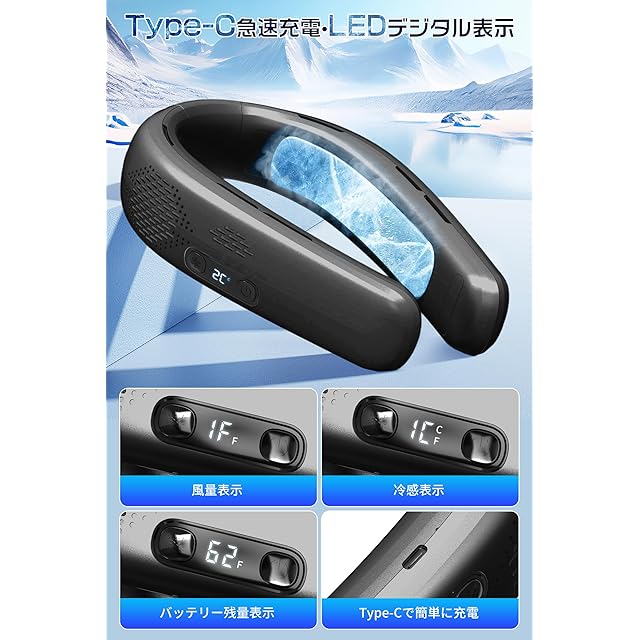【360°立体冷風&3段階風量調節】この首掛け扇風機は高速モーターを搭載し、1分間に7000回転の高速回転で、風量が80%増加し、熱を瞬時に吹き飛ばします。6つの送風口で、上下左右に強力な冷風が連続的に流れ、首から背中にかけて寒冷空気が360度全体を包み込み、まるで専用の清涼空間が広がっているかのような心地良さを感じることができます。3段階自由調節できます、ボタンを押すと、「風量」は強・中・弱の3段階と「冷却」は弱冷・中冷・強冷の3階段を切り替えることが可能です。この首掛けファンを手に入れば、暑い夏の日々でも、自分だけの快適な涼しい空間を手軽に作り出すことができます。
