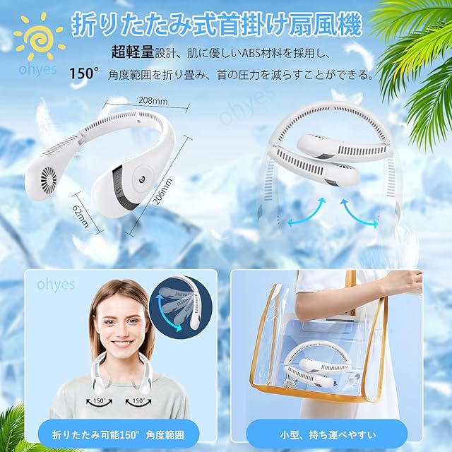 【2025最新進化・羽根なし首掛け扇風機&急速冷却】ohyesの最新バージョンの折りたたみ式ネッククーラーは、空気流とノイズ低減機能をアップグレードしています。この首掛け扇風機は、より強力な気流と低騒音を備えており、常に冷却を維持しています。独立風カバー技術と二重タービン扇葉設計を採用し、寿命が長く、風速を高めた。従来の首掛けファンよりも安全で、髪が挟まれたりほこりが出たり、汗が首掛け扇風機に入ったりする心配がありません。暑い夏に仕事仲間としての理想的な選択。購入前に注意してください:私たちのファンの首の後ろには風がありません。ファンの電源スイッチを押しても反応しない場合は、まず充電してから使用してください。