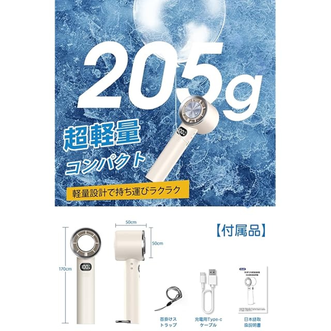 【100段階の風量制御で“自分だけの風”を。新世代の手持ち扇風機】従来の3段階では満足できない方へ。この手持ち扇風機は0〜100段階の微細な風量コントロールが可能で、朝の柔らかい風から昼の直射日光下での強風まで、状況に応じて無限にカスタマイズ。LEDディスプレイで風量を可視化できるので、理想の涼しさを直感的に選べます。