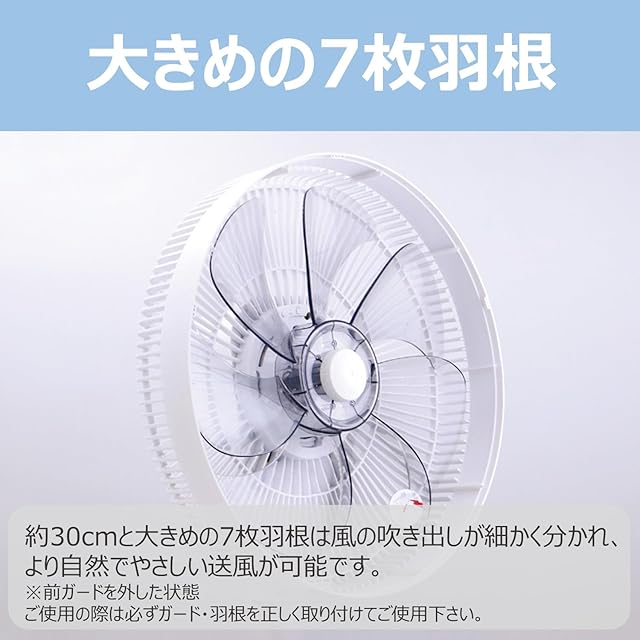 【大きめの7枚羽根】約30cmと大きめの7枚羽根は風の吹き出しが細かく分かれ、より自然でやさしい送風が可能。
