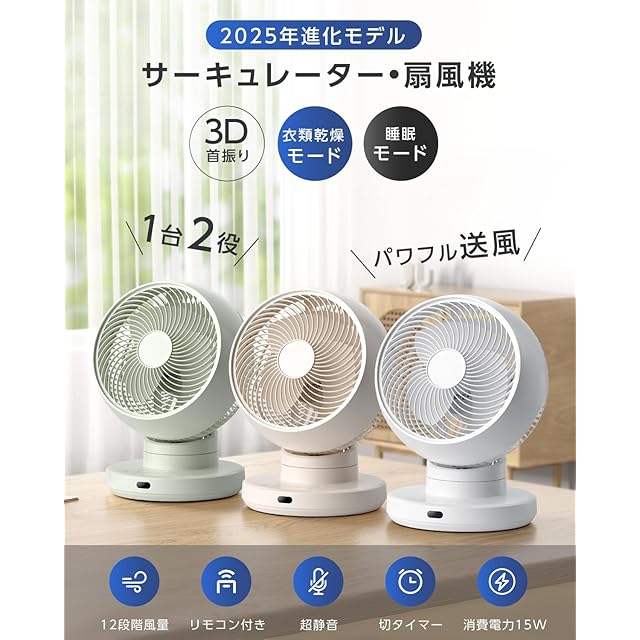✨【全方位自動首振りサーキュレーター】サーキュレーターは、上下左右90度に自動で首を振り、部屋中の空気を均等に循環させます。これにより、どの季節にも部屋全体に自然な空気の流れをもたらし、除湿機や暖房器具との併用で、より快適な室温の維持をサポートします。肌に直接触れることのない柔らかな風は、年間を通して居心地の良い生活空間を実現します。騒音レベルを≦30dBに抑えた低騒音設計により、静かな夜や集中力が求められる作業時も、穏やかな安らぎを提供します。