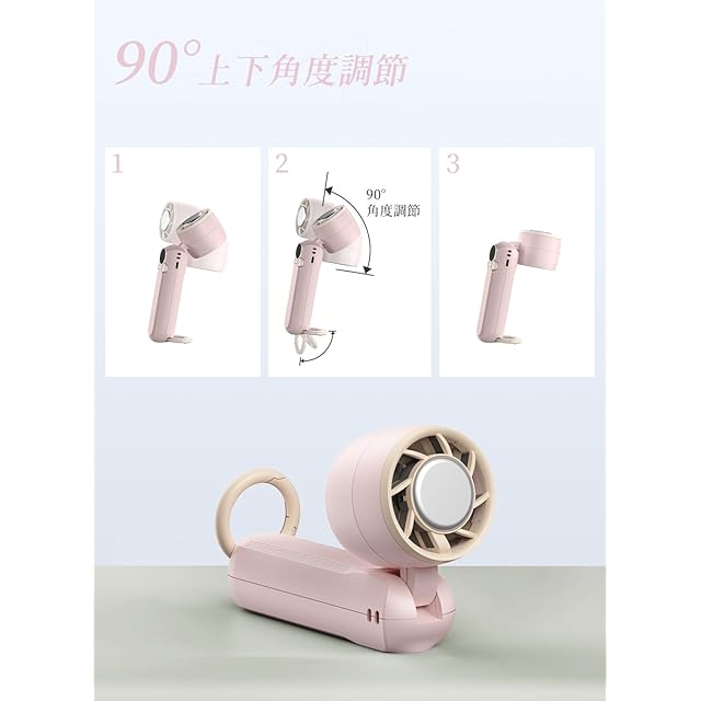 ✅【一台5役、扇風機+クーラー どこでもサッと涼しい!折りたたみ式で持ち運び自由】手持ち・卓上・首掛け・吊り下げ扇風機・冷却プレートでひんやり!90°折りたたみ可能なデザインにより、デスクの上で角度調整が簡単にでき、付属のフックで車内やバッグにも掛けられます。さらに、折りたたんで卓上使用する際に接地する部分には滑り止め加工が施されており、使用中もズレにくく、安定して設置可能。高品質ストラップ付きで、吊り下げ使用時にも快適に使え、両手が自由になるためアウトドアや作業中にも大活躍。登山、通勤、スポーツ観戦、旅行、キャンプなど、多用途に対応するポータブル扇風機です。