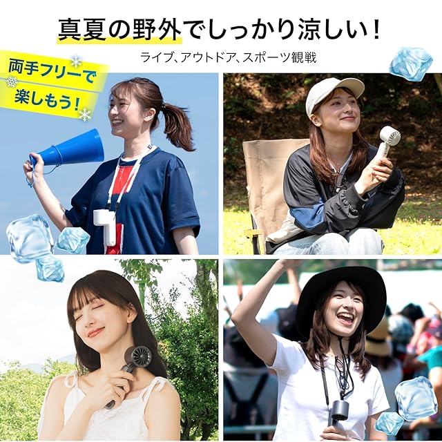 【さまざまなシーンで活躍】「FanRush」は、ライブ、アウトドア、キャンプ、スポーツ観戦など、真夏の野外イベントでも大活躍します。さらに、コンパクトで持ち運びやすく、収納式のフックスタンドを搭載しているため、デスクでも便利に使用できます。【セット内容】本体×1、首掛けストラップ、USB-A to Cケーブル(約1m)、取扱い説明書兼保証書【注意】ご使用前には、必ず取扱い説明書をご確認ください。