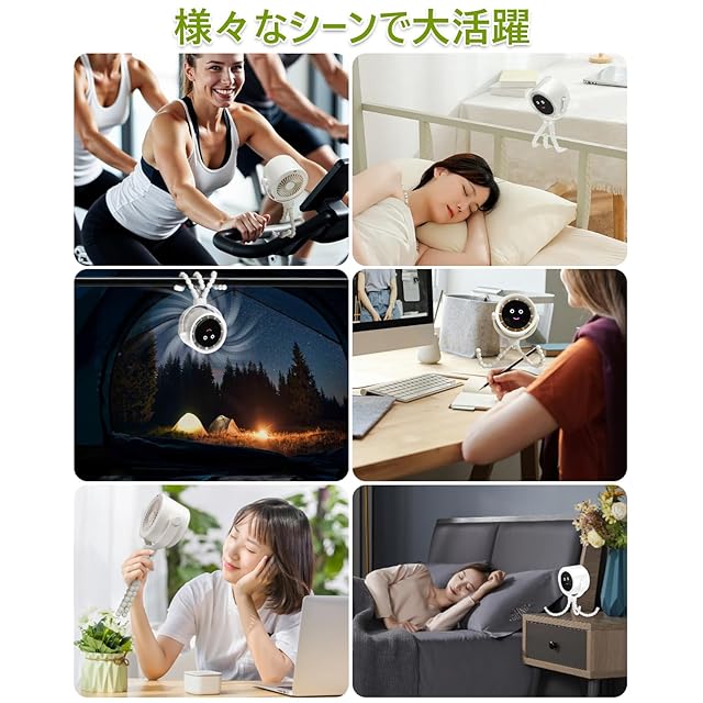 【業界新設計巻き付け自由自在なファン】巻きつけ扇風機は従来の携帯扇風機と違って、タコの足のような設計され、柔らかくて巻き付け自由自在です。卓上・吊り下げ・ハンディ・巻き付け全て対応、テーブルはもちろん、寝床・車後部座席・車シート・テントなど、場所を選ばず活躍いたします。