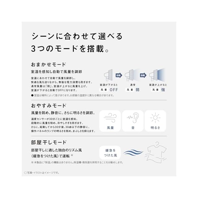 かしこく快適な空間を3種モード搭載(おまかせ、おやすみ、部屋干し)